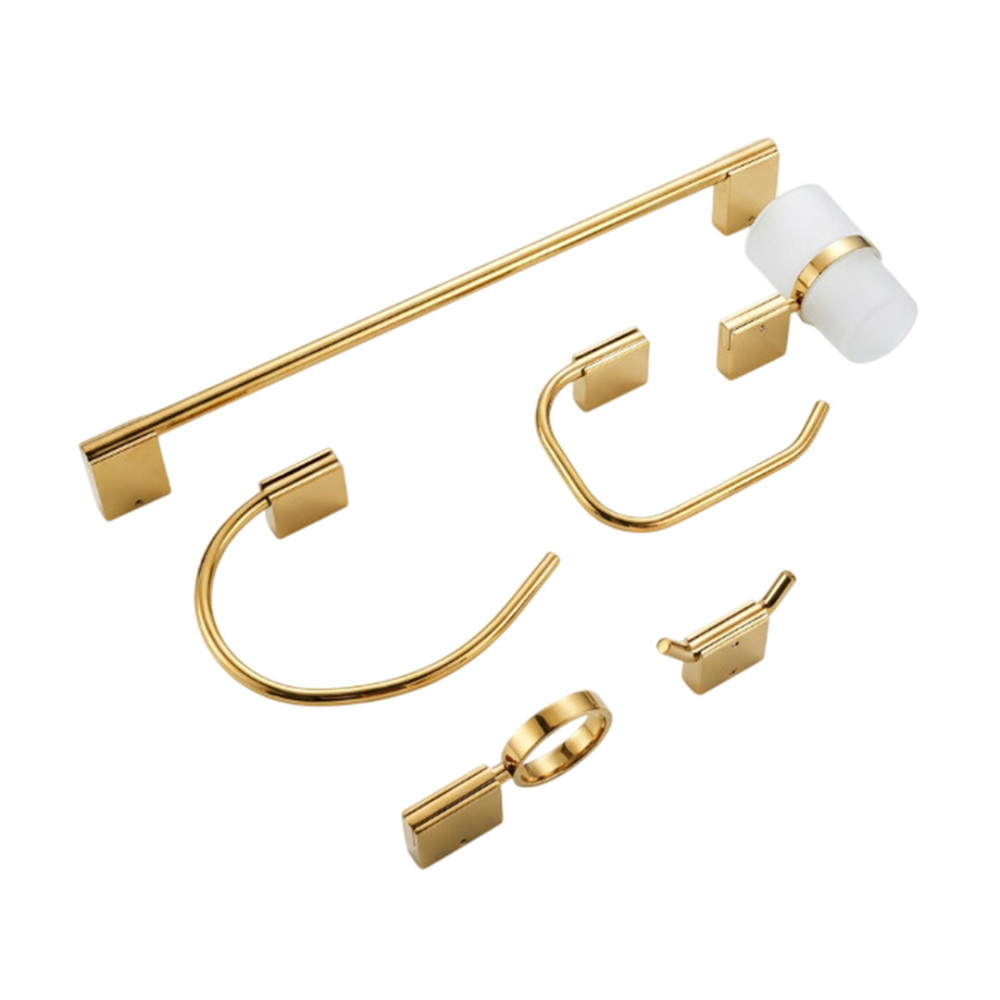 حوّل حمامك مع طقم أكسسوارات حمام فاخرة من ألسا مكونة من 6 قطع. مصنوعة بدقة عالية في الصين، هذه المجموعة المتطورة من تشطيب ذهبى مطفى مما يوفر أناقة عصرية وجودة استثنائية.