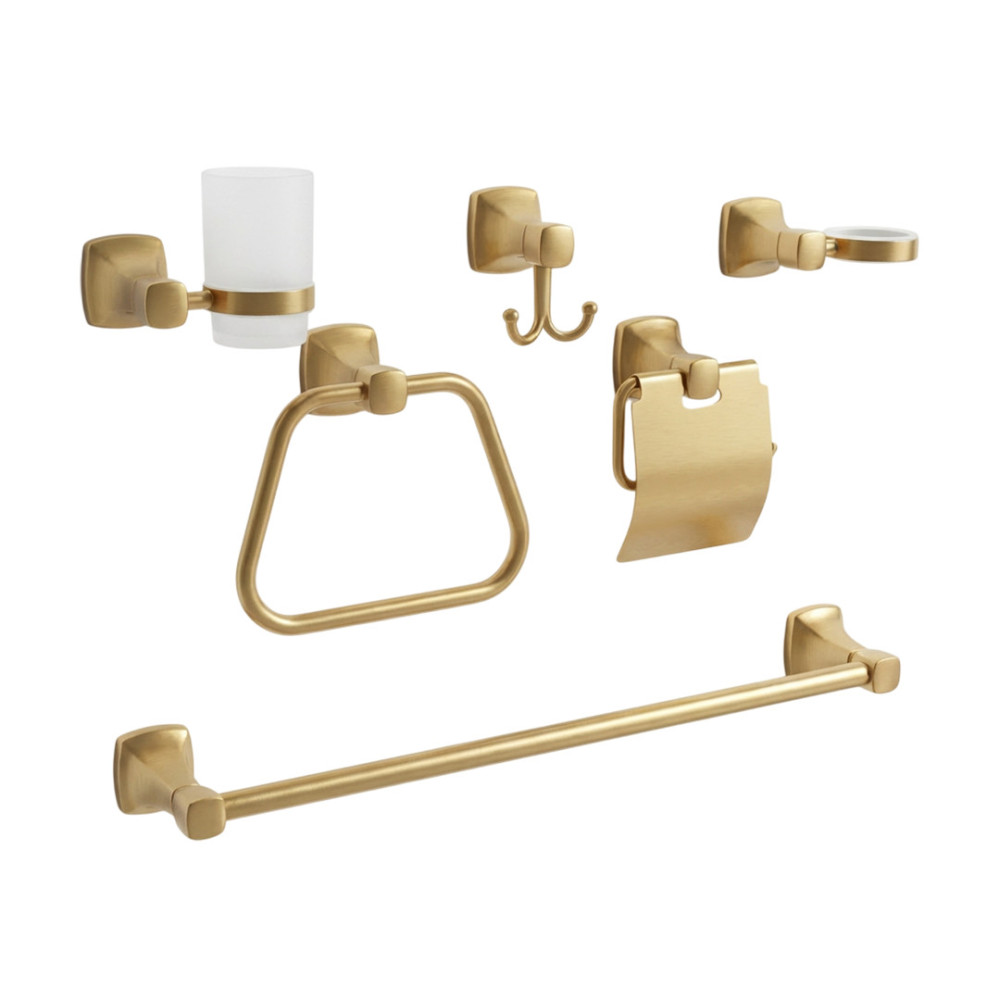 حوّل حمامك مع طقم أكسسوارات حمام فاخرة من ألسا مكونة من 6 قطع. مصنوعة بدقة عالية في الصين، هذه المجموعة المتطورة من تشطيب ذهبى مطفى مما يوفر أناقة عصرية وجودة استثنائية.