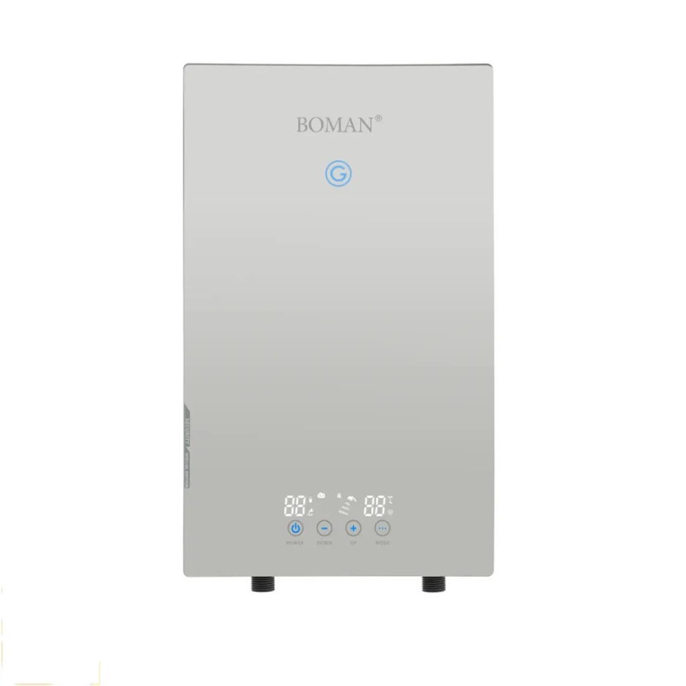سخان مياة كهرباء ديجيتال بومان بدون خزان مزود بنظام حساسات، بيشتغل تلقائيا ويتوقف تلقائيا مع فتح او قفل صنبور المياه، وتقدر تتحكم بشكل كامل في درجة الحرارة المفضلة ليك عن طريقة اختيارها من مقبض السخان,كمية مياه من 4 لتر لـ 8 لتر في الدقيقة،درجة الحرارة من 37 درجة لـ 65 درجة