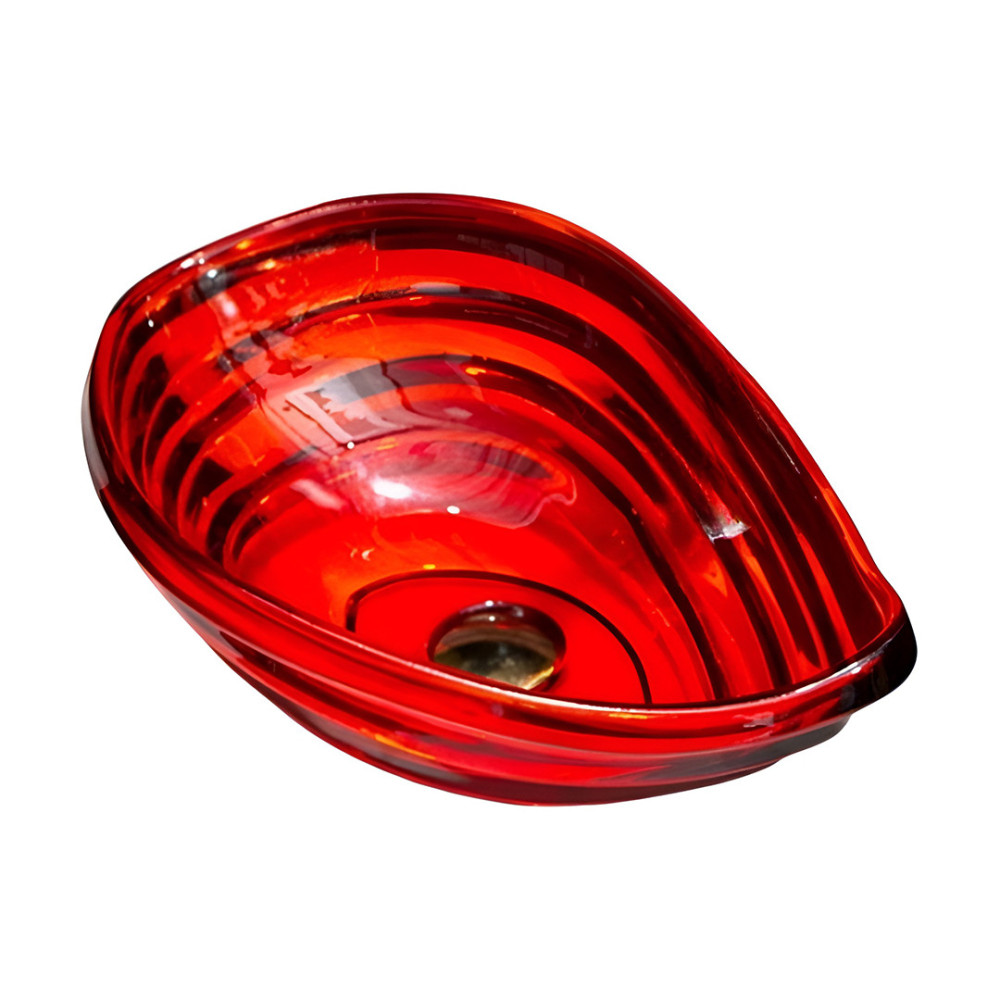 Introduce Refined Elegance to Your Bathroom with The Drop Glass Countertop Wash Basin, Designed in A Graceful Oval Shape with Intricate Geometric Engravings that Beautifully Reflect Light.