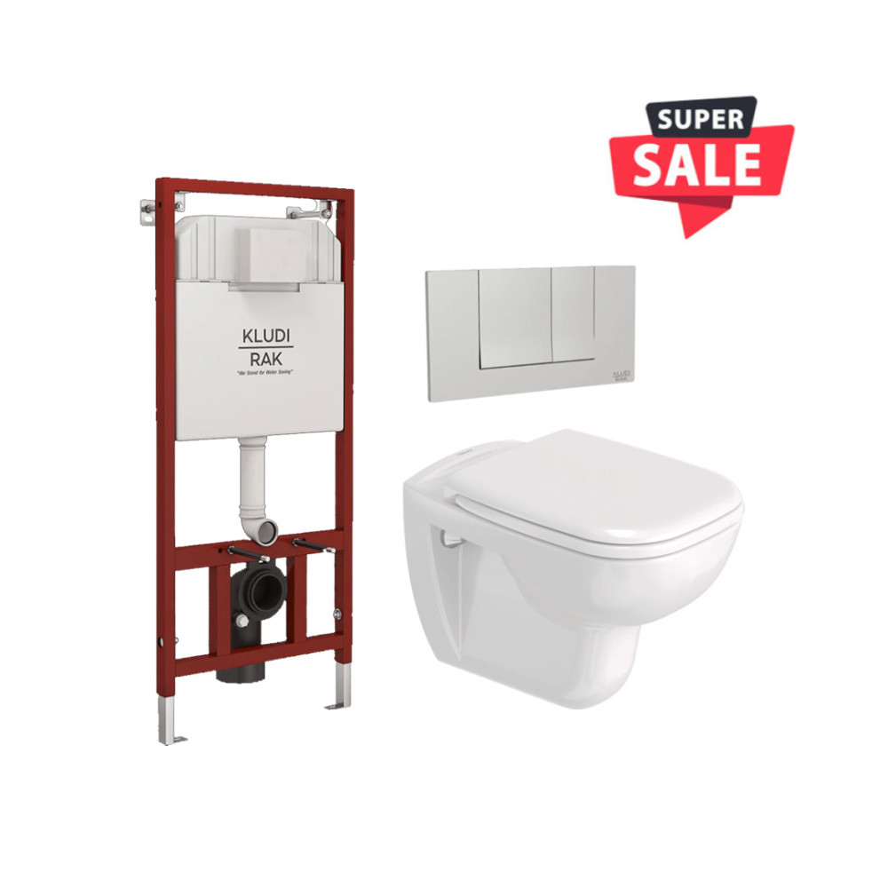 Duravit D-Code Wall-Mounted Toilet White & Kludi Rak Full Frame Concealed Tank