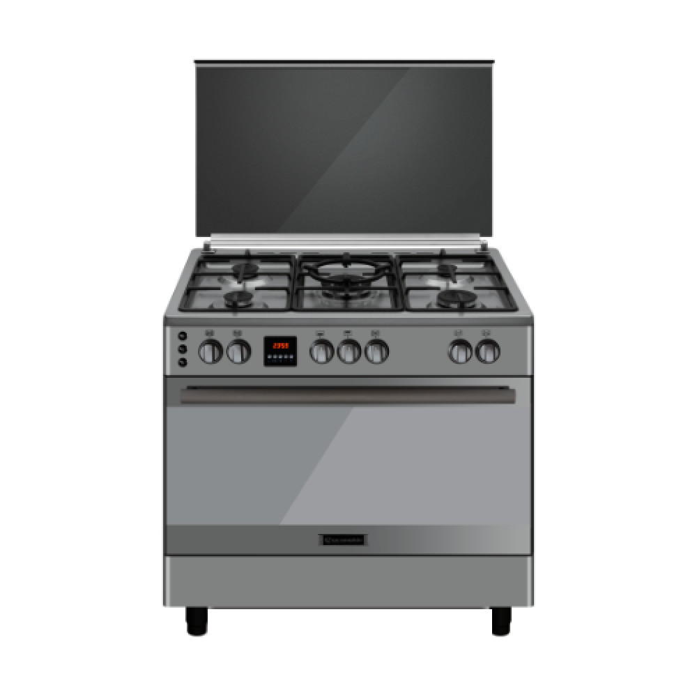 بوتجاز فري ستاند غاز 5 شعلة 90 سم فضي استانلس X زجاجي إيكوماتيك
