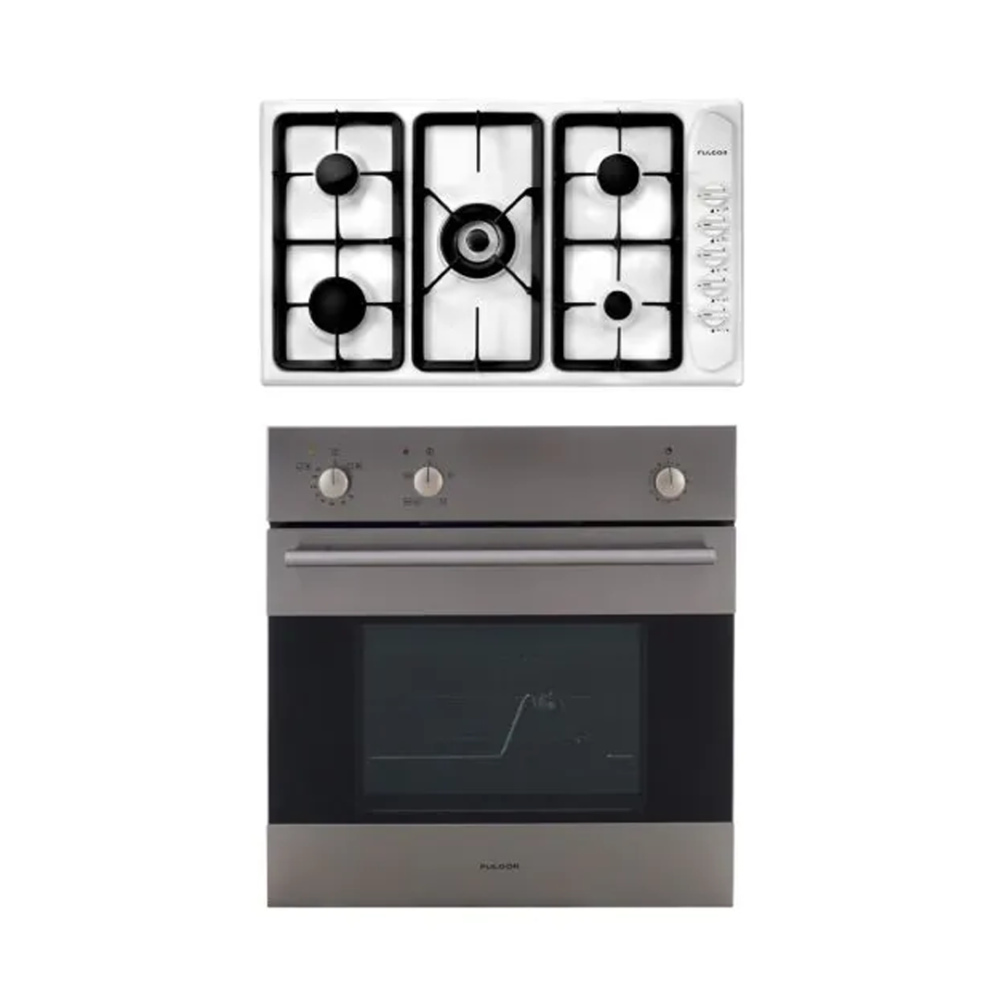 مسطح غاز بلت ان 5 شعلة 90 سم مع فرن غاز بلت ان بشواية 58 لتر 60 سم ستانلس من فولجور