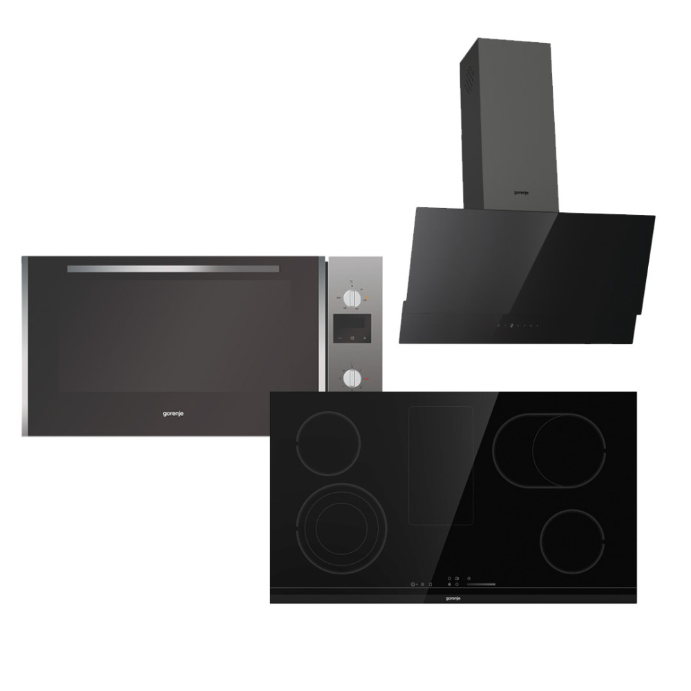 Gorenje Built-In Electric Oven 89 Liters & Built-In Electric Hob 90 Cm Black & Decorative Hood Built-In 90cm