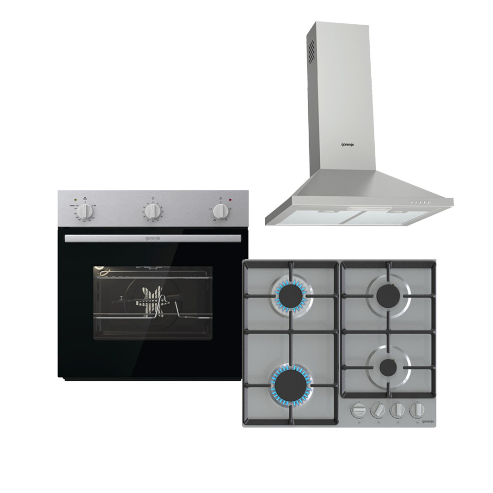 Gorenje Built-in Gas hob 60 cm stainless steel & Built-in Gas Oven 60 cm & Chimney Hood built-in 60cm