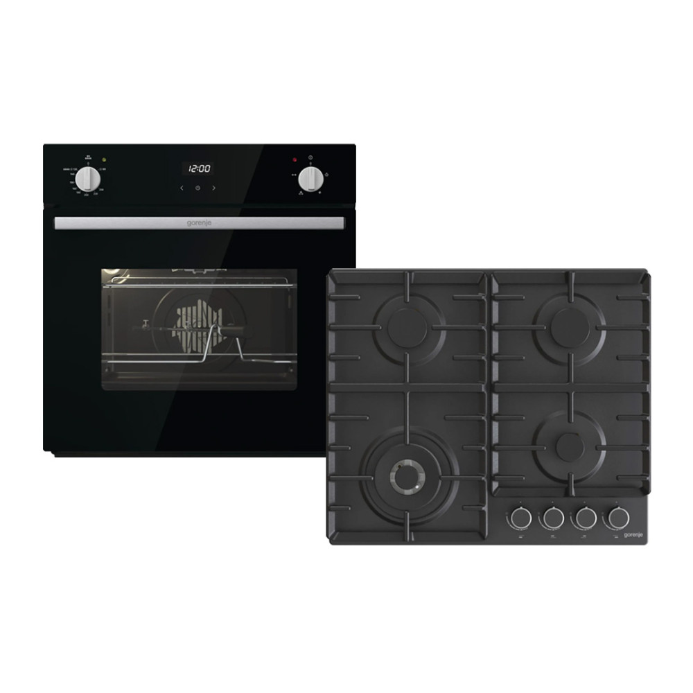 مسطح غاز جورينيا 60 سم استانلس أسود و فرن بلت ان غاز 60 سم أسود
