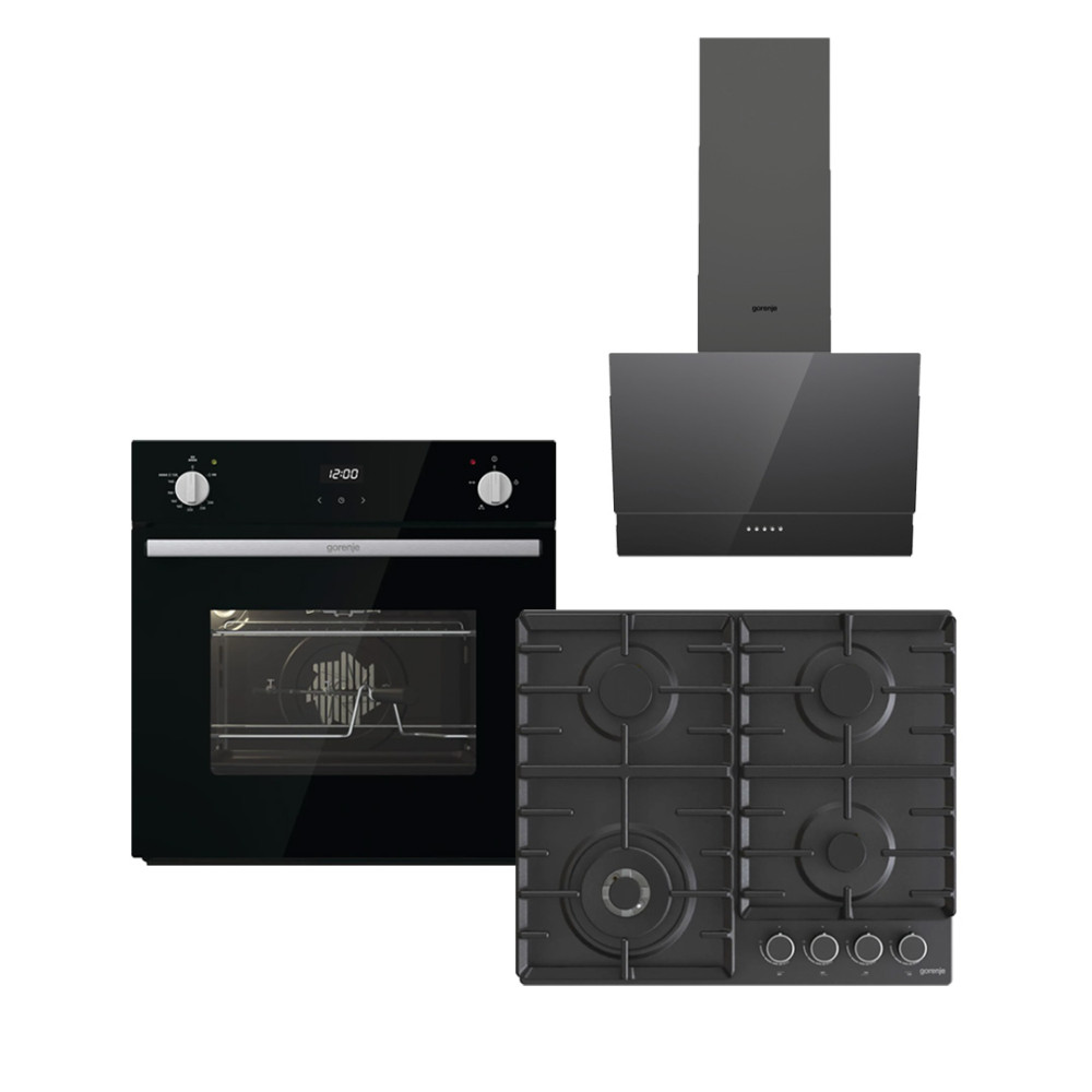 شفاط ديكورى بلت ان 60 سم استانلس أسود جورينيا و مسطح غاز 60 سم استانلس أسود و فرن بلت ان غاز 60 سم أسود
