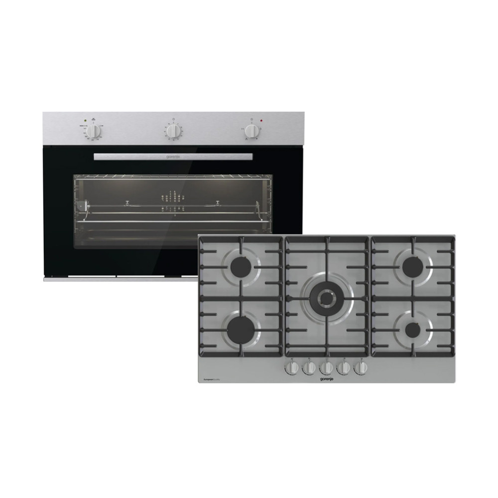 Gorenje Built-In Gas Oven 88 Liter Stainless Steel & Built-In Gas Hob 90 Cm Stainless Steel