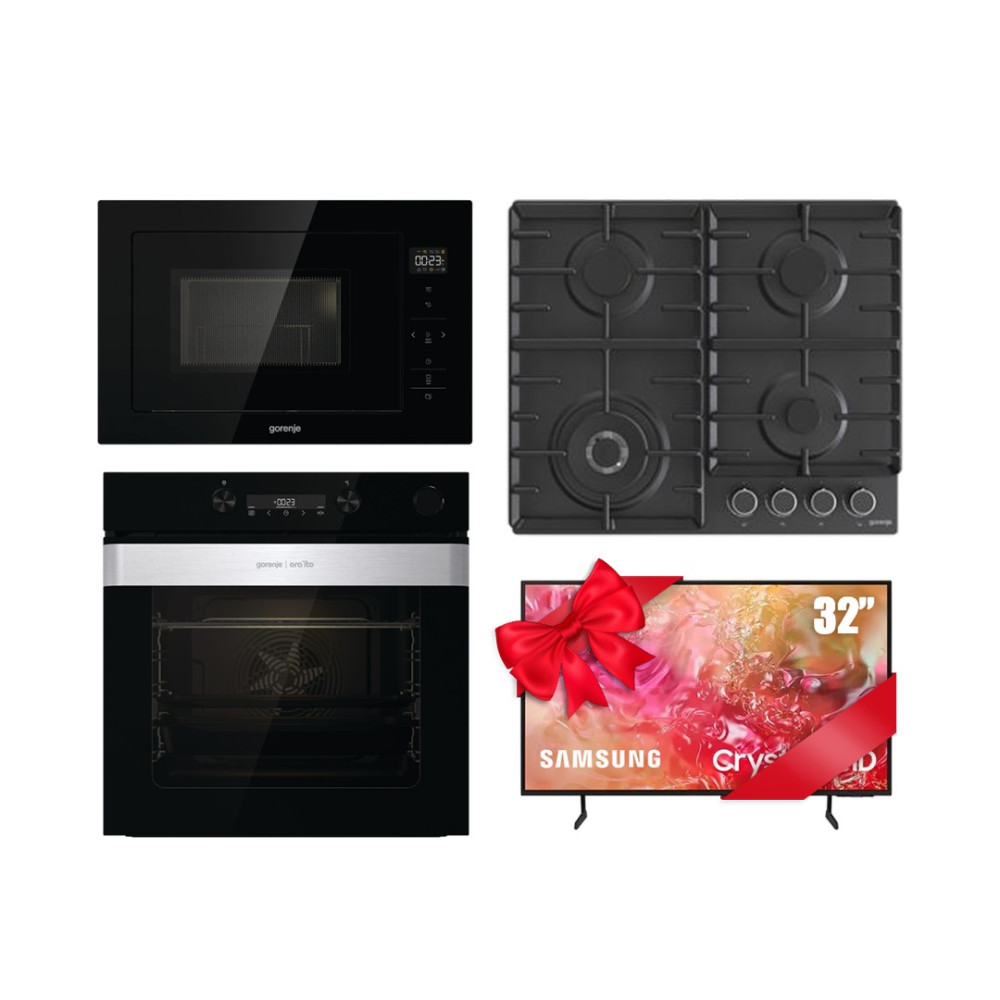 Gorenje Built-In Electric Oven with Gas Hob and Built-In Microwave Oven 60 cm Black