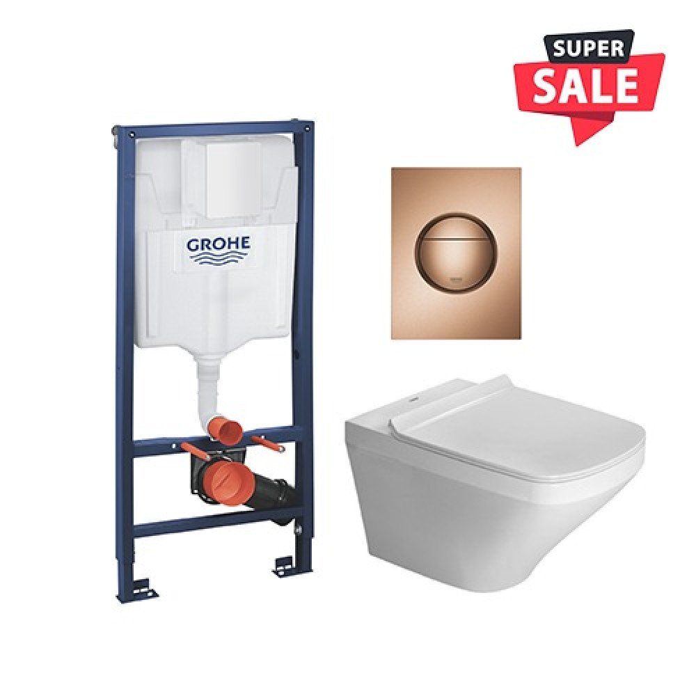 مرحاض معلق ديورافيت ابيض و خزان دفن جروهي بشاسية كامل و لوحة طرد روز جولد