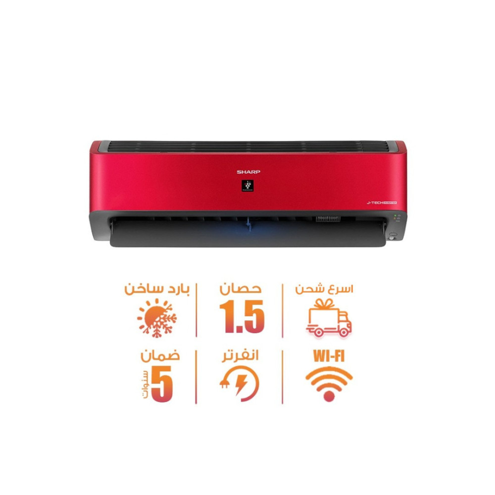 تكييف شارب اسبليت 1.5 حصان بارد وساخن انفرتر ديچيتال بلازما كلاستر احمر - AY-XP12YHER