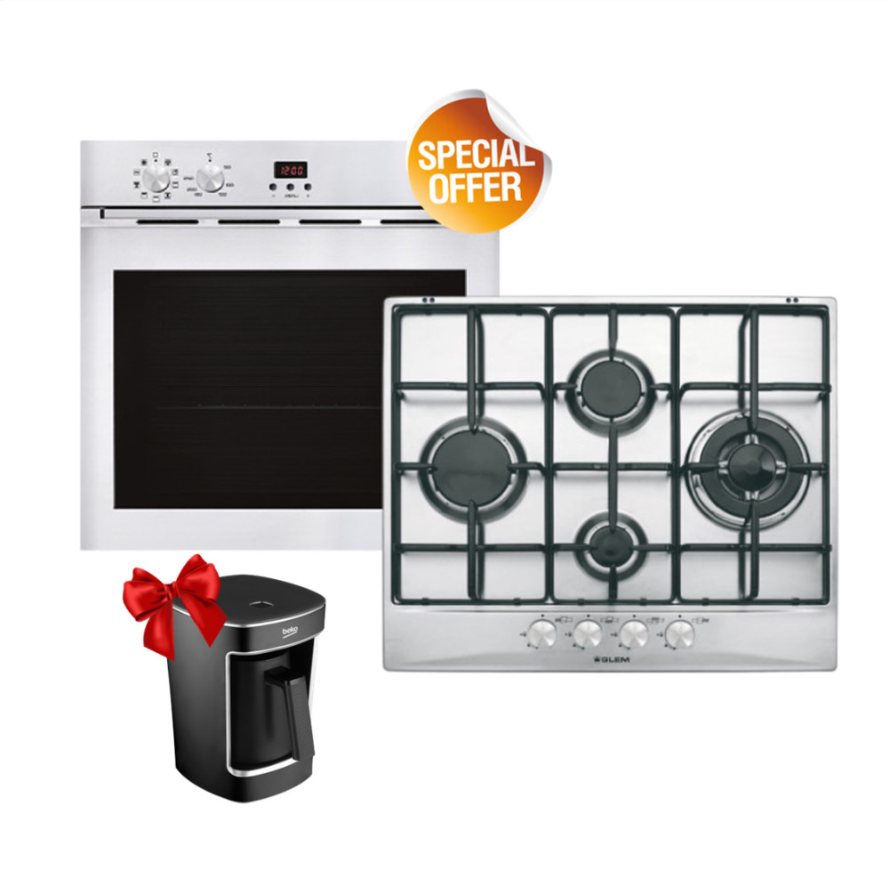 طقم أجهزة مطبخ جليم جاز 60 سم ستانليس ستيل مع ماكينة قهوة هدية