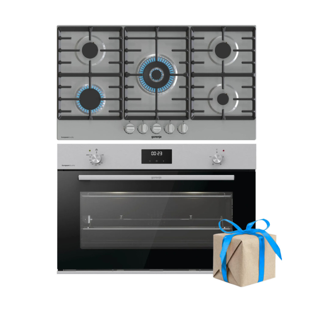 فرن ومسطح غاز بلت ان 90 سم استانلس من جورينيا