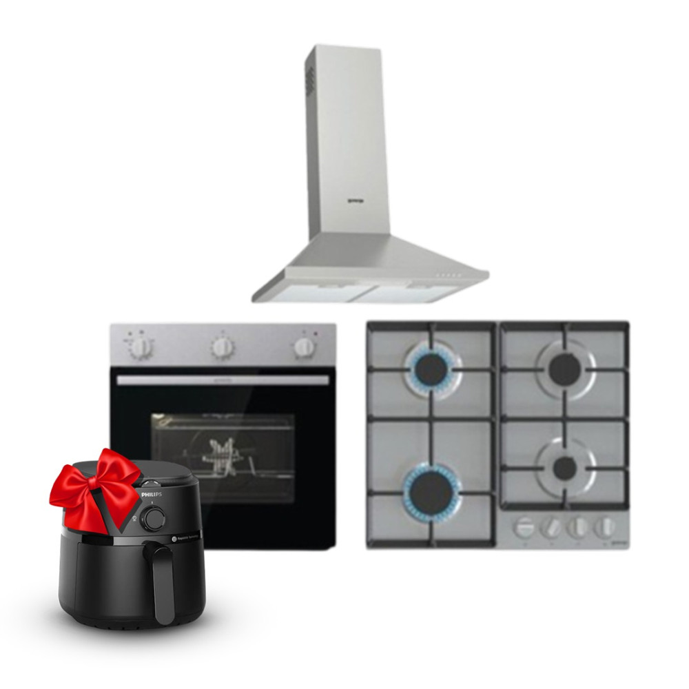 Gorenje Built-In Gas Oven with Gas Hob and Chimney Hood 60 cm Stainless Steel