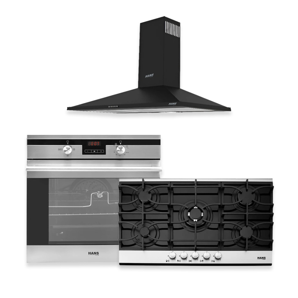 Hans Built-in Gas oven 60 cm With Built-in Hob 90 cm & Hood 90 cm Black