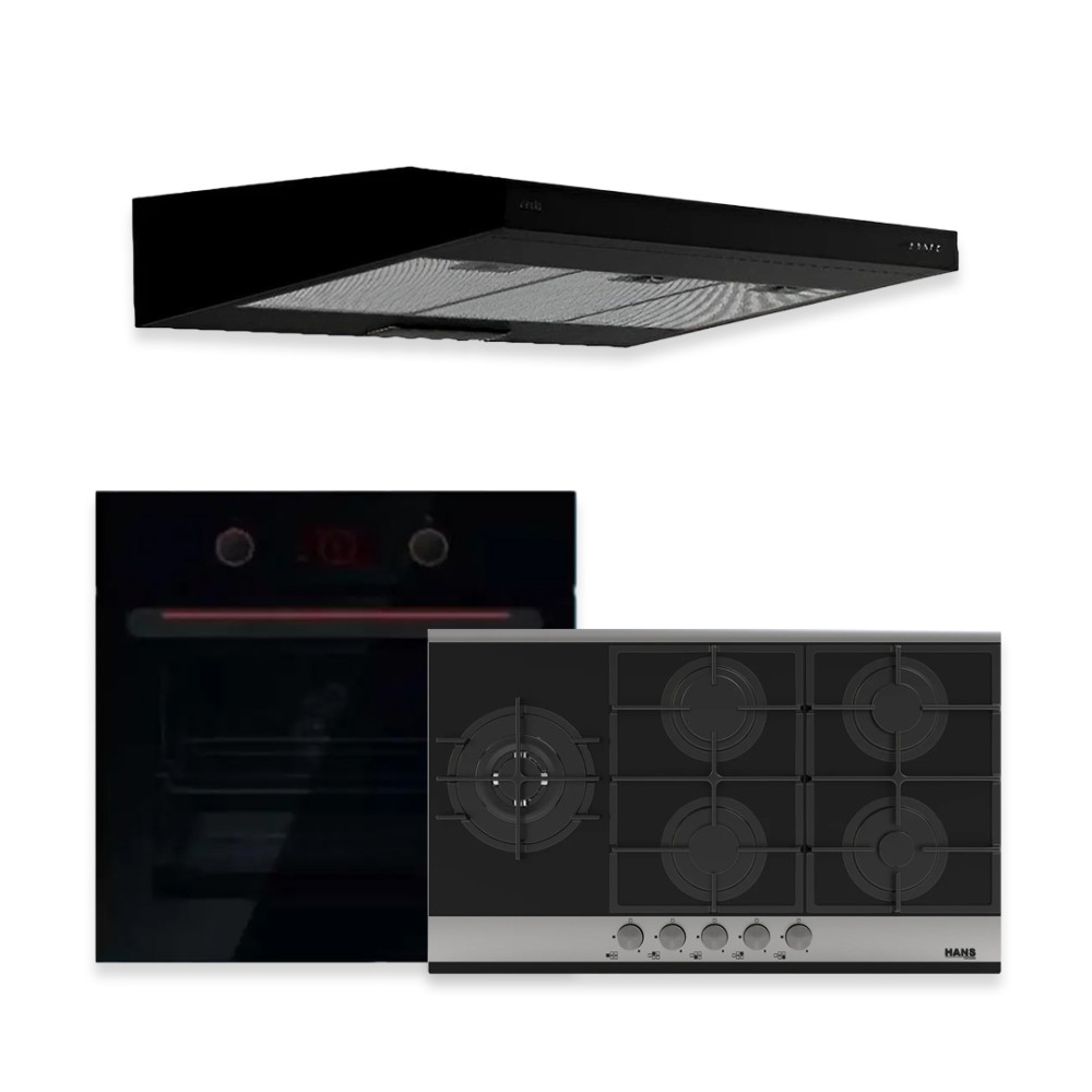 Hans Built-in Gas oven 60 cm With Built-in Hob 90 cm & Hood 90 cm Black