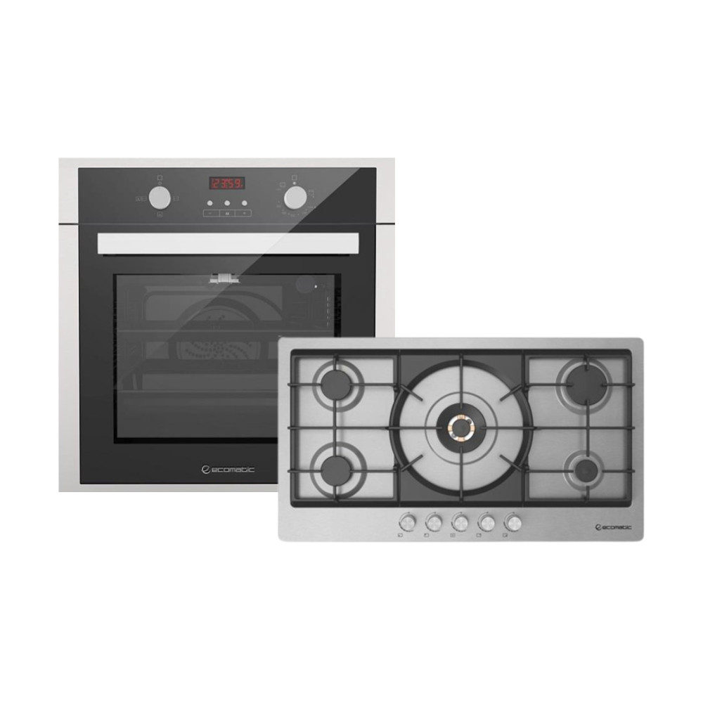 فرن بلت ان غاز إيكوماتيك 67 لتر و مسطح غاز 92 سم استانلس ستيل