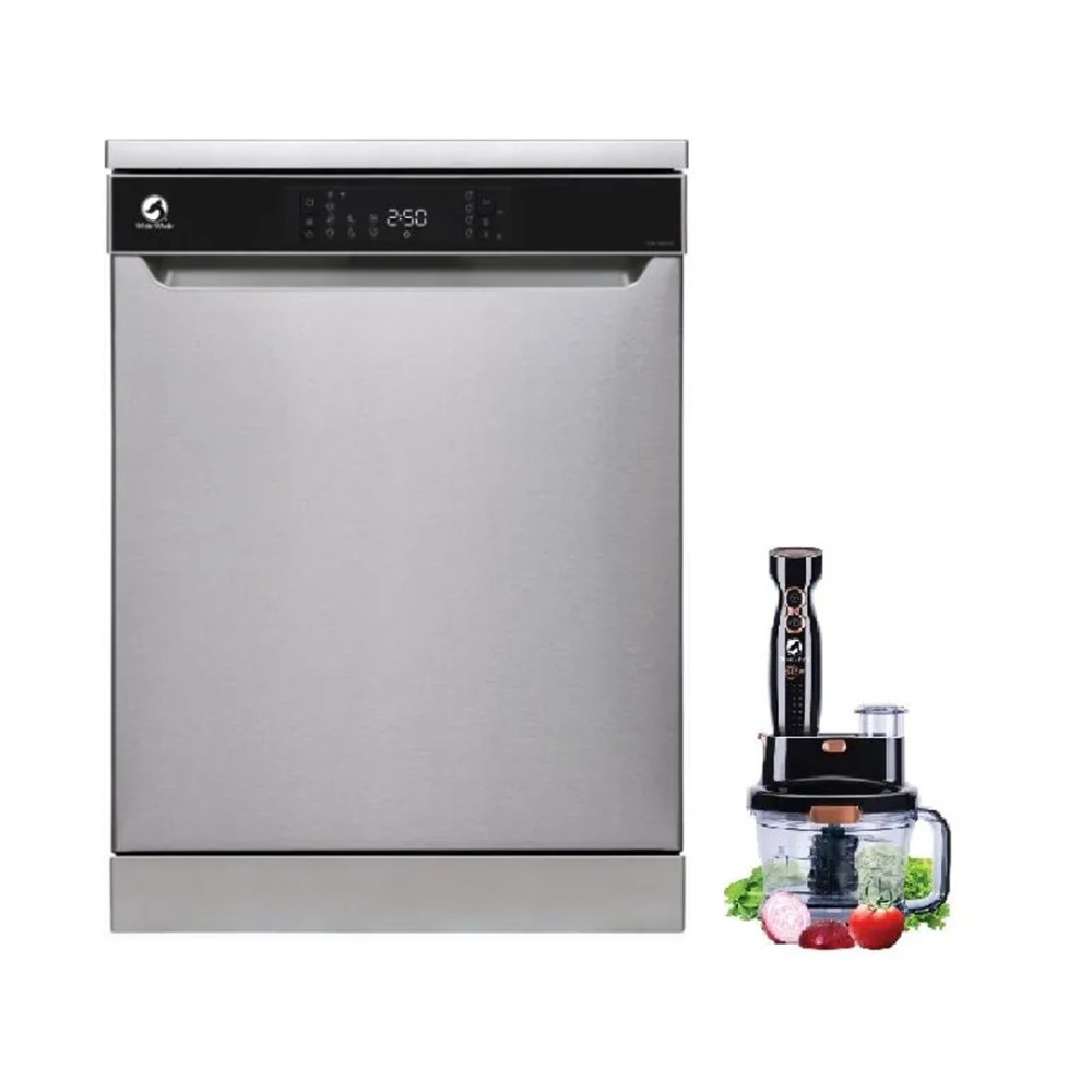 غسالة أطباق ديجيتال وايت ويل 15 فرد فضى مع هاند بلندر 2000 وات هدية