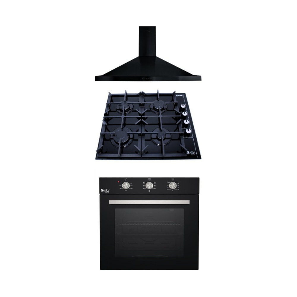 بيورتي شفاط 60 سم و مسطح غاز 60 سم و فرن غاز 60 سم اسود