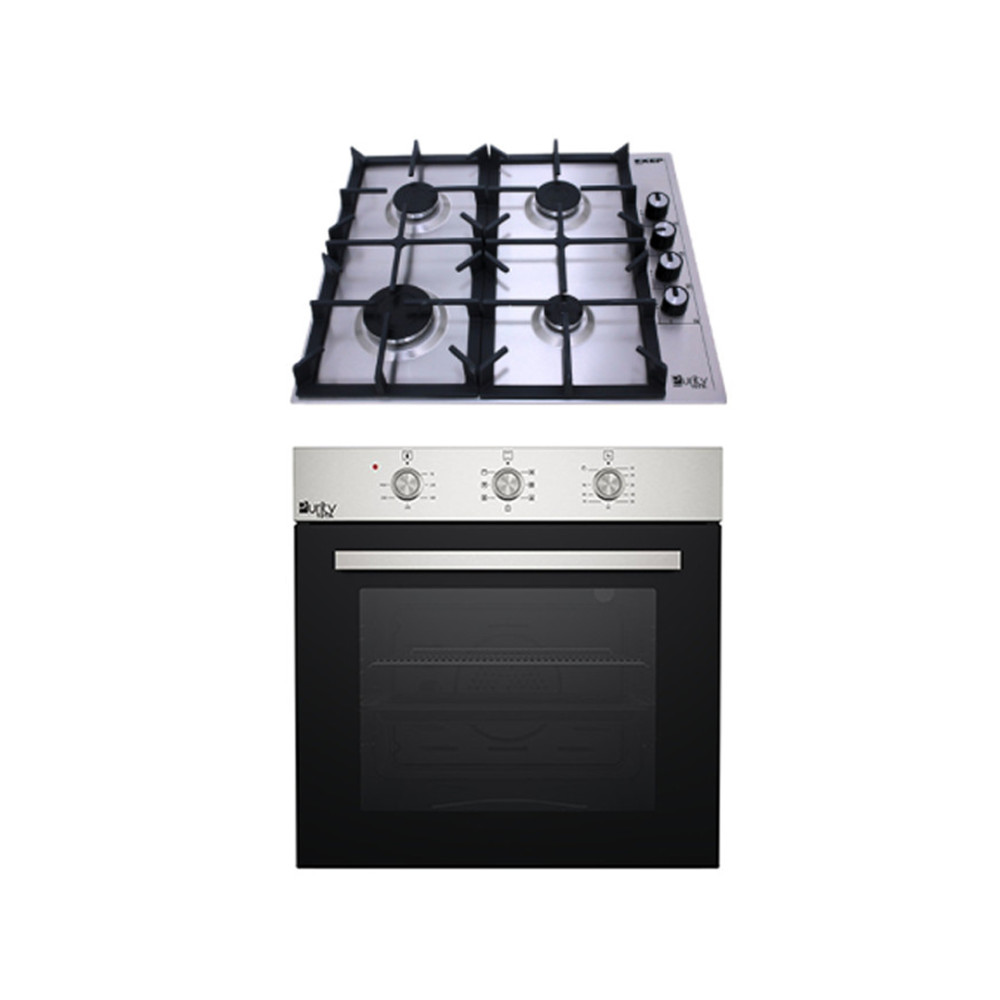 مسطح غاز بلت ان 4 شعلة مع فرن غاز بلت ان بالشواية 60 سم 65 لتر استانلس ستيل بيورتي