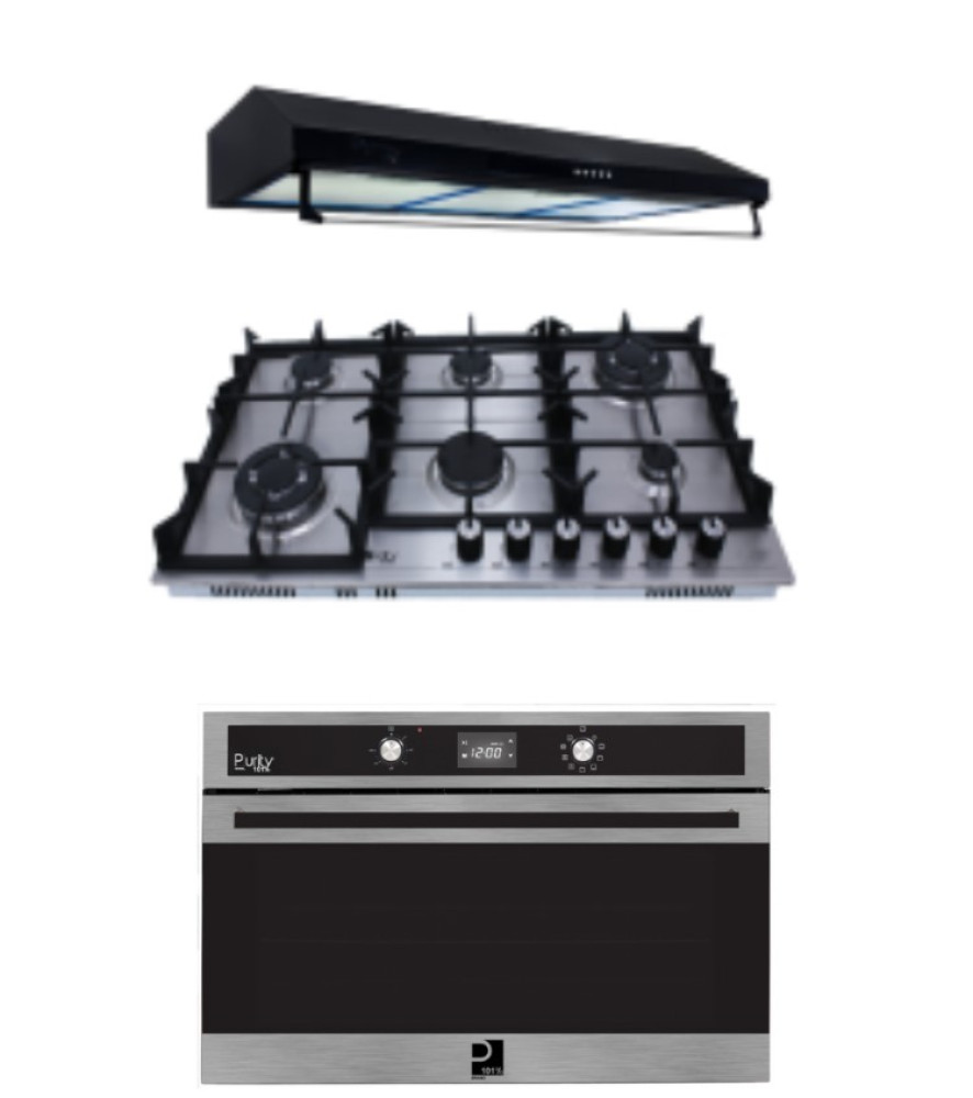 شفاط مطبخ اسود ومسطح غاز و فرن 98 لتر 90 سم استانلس ستيل من بيورتى