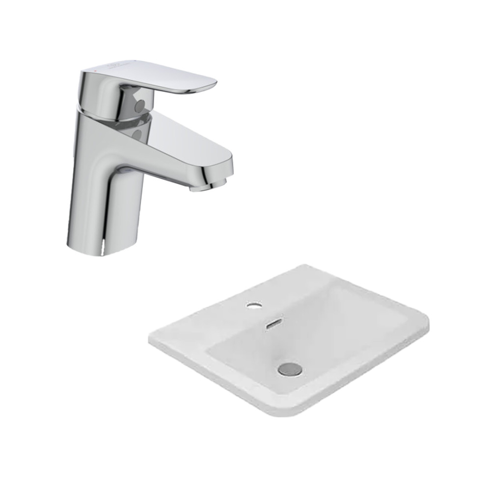 حوض فوق سطح مستطيل سانيبيور اوبيرون أبيض و خلاط حوض إيديال ستاندرد سيرافليكس كروم