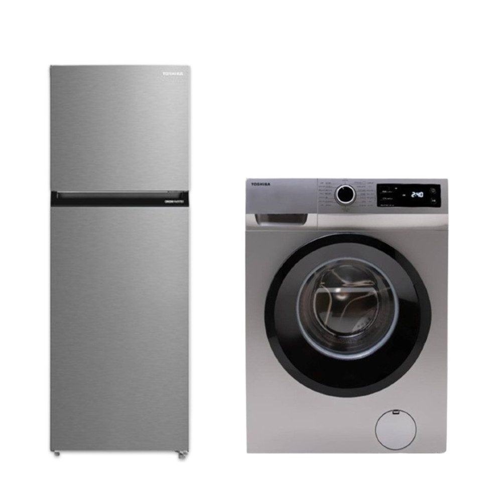 Toshiba Inverter No Frost Refrigerator 411 Liters with Washing Machine 8 Kg Silver